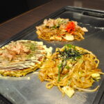 麺をはさんだお好み焼きのモダン焼き。 ミックス焼きのモダン。